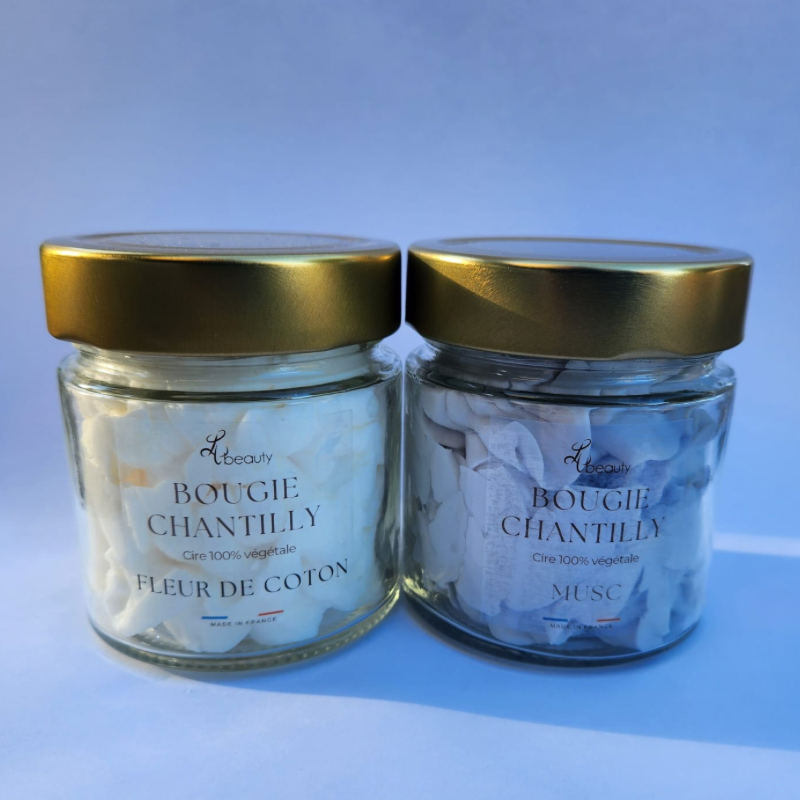 Duo de bougies parfumées – Musk & Fleur de Coton ✨🕊️ 100% cire végétale – Élégance & douceur enveloppante