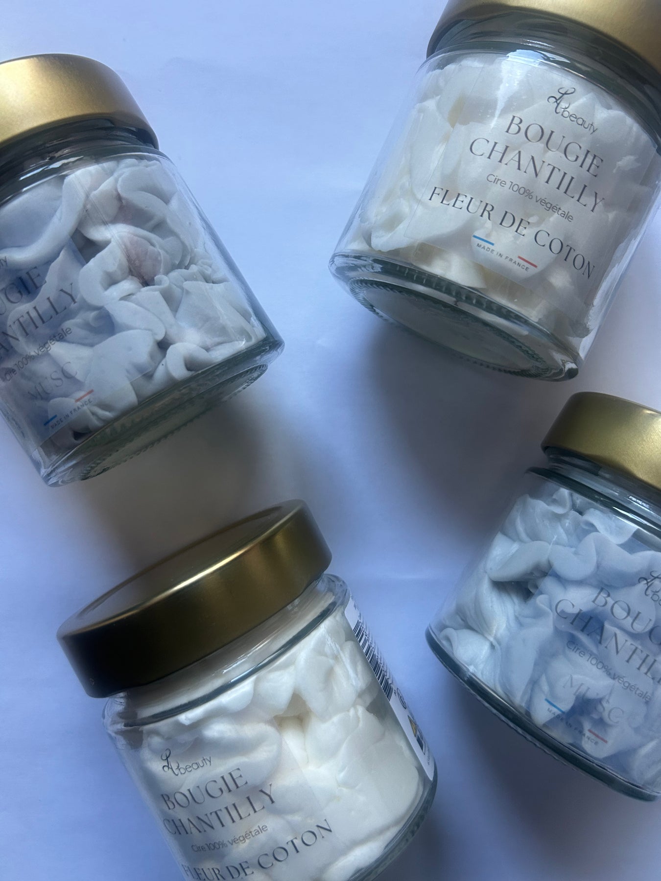• 1 bougie parfumée à la Fleur de Coton – propre, délicate et apaisante